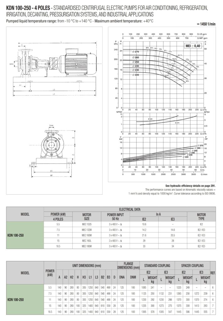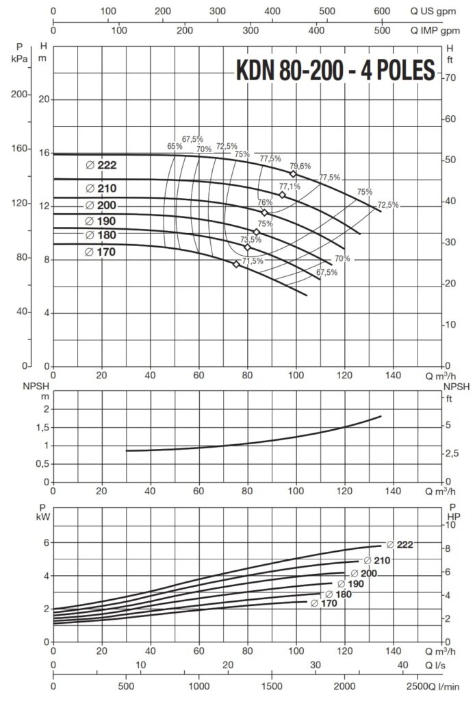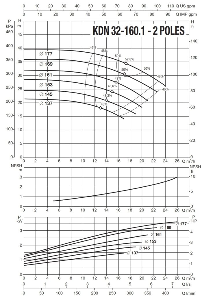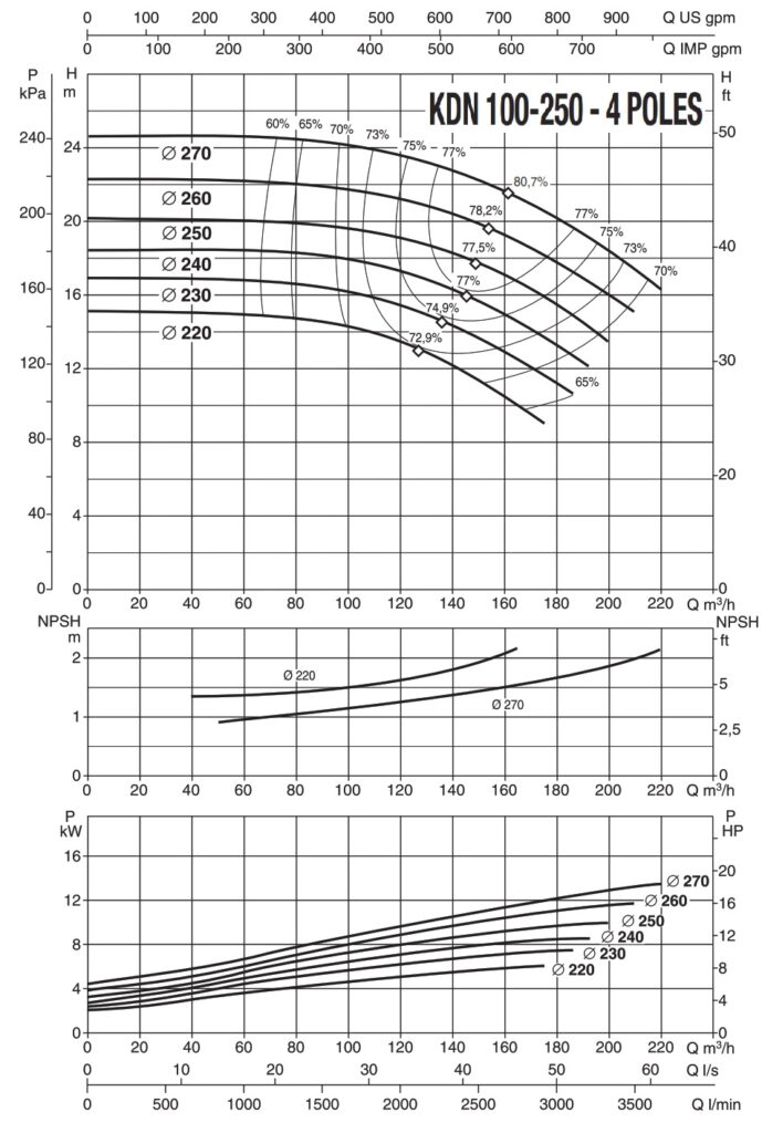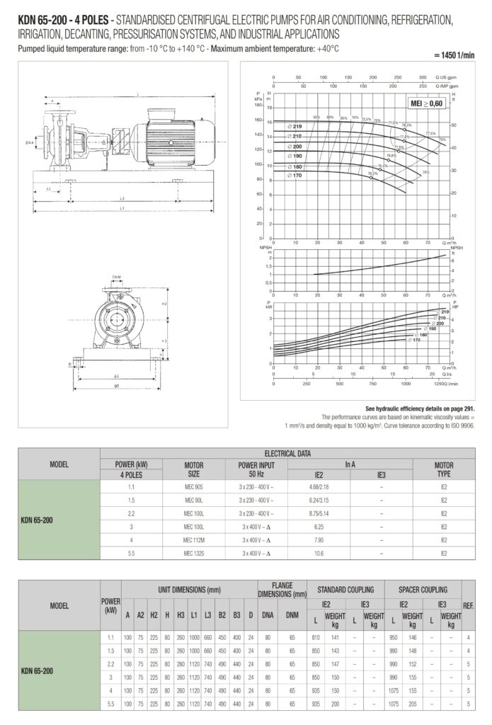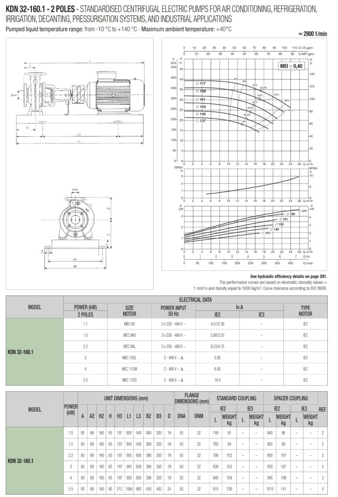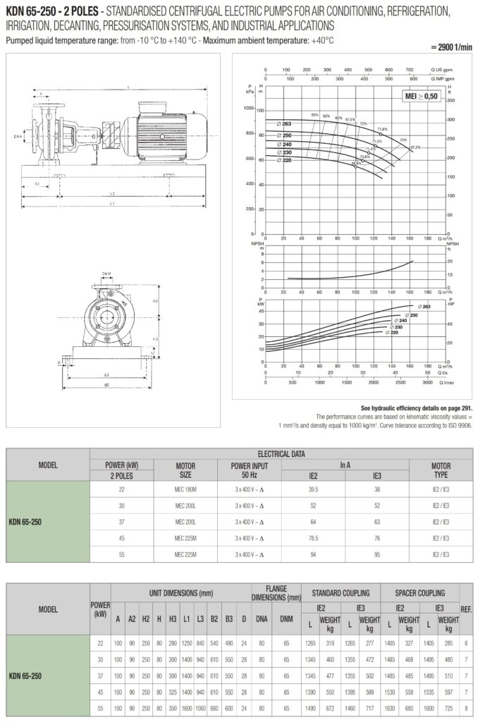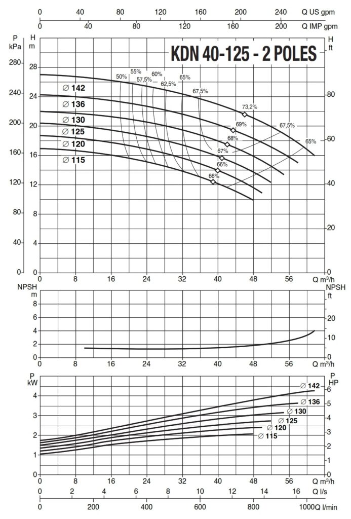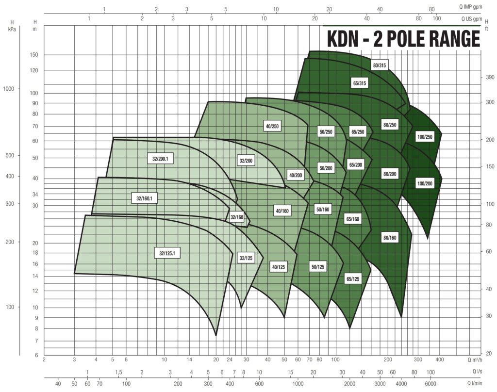 دامنۀ کارکرد پمپ کوپله با شاسی DAB سری KDN