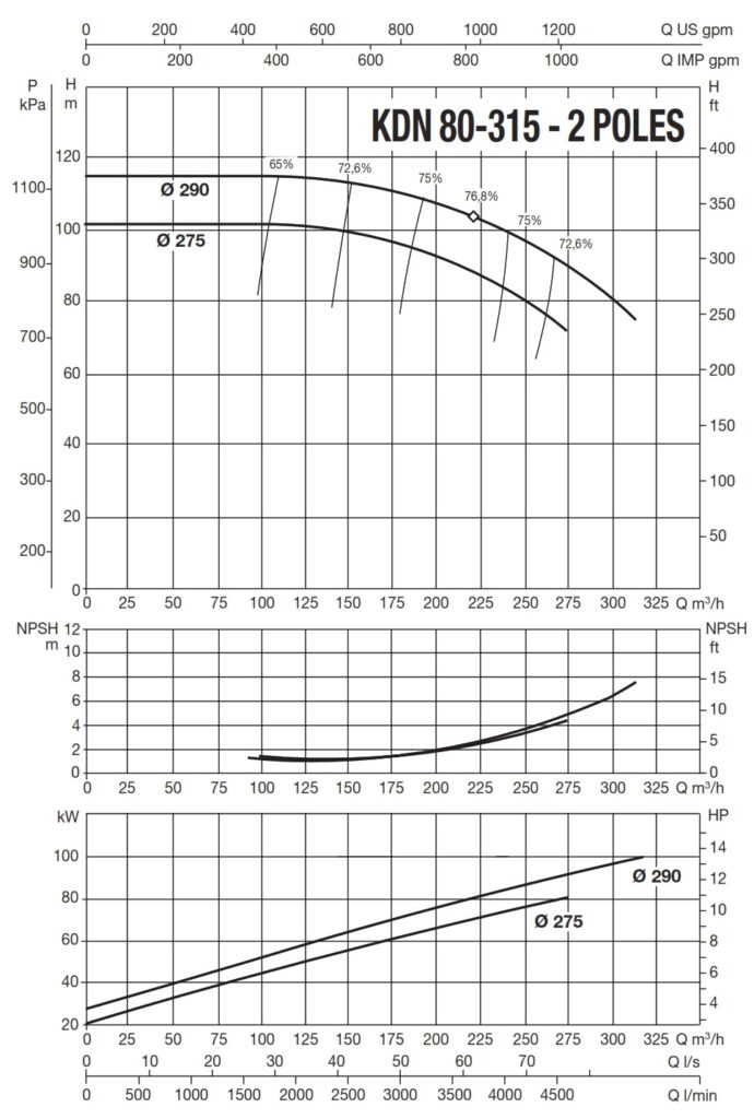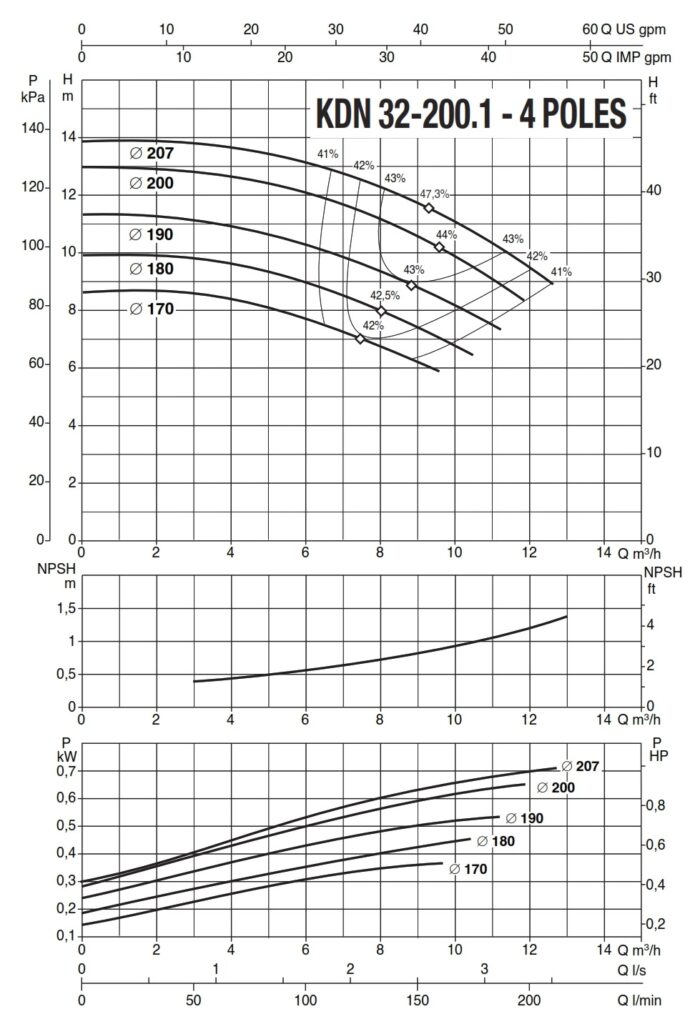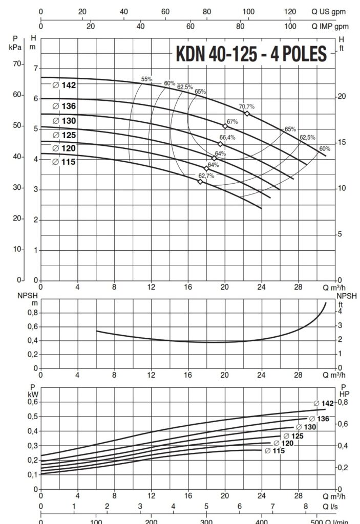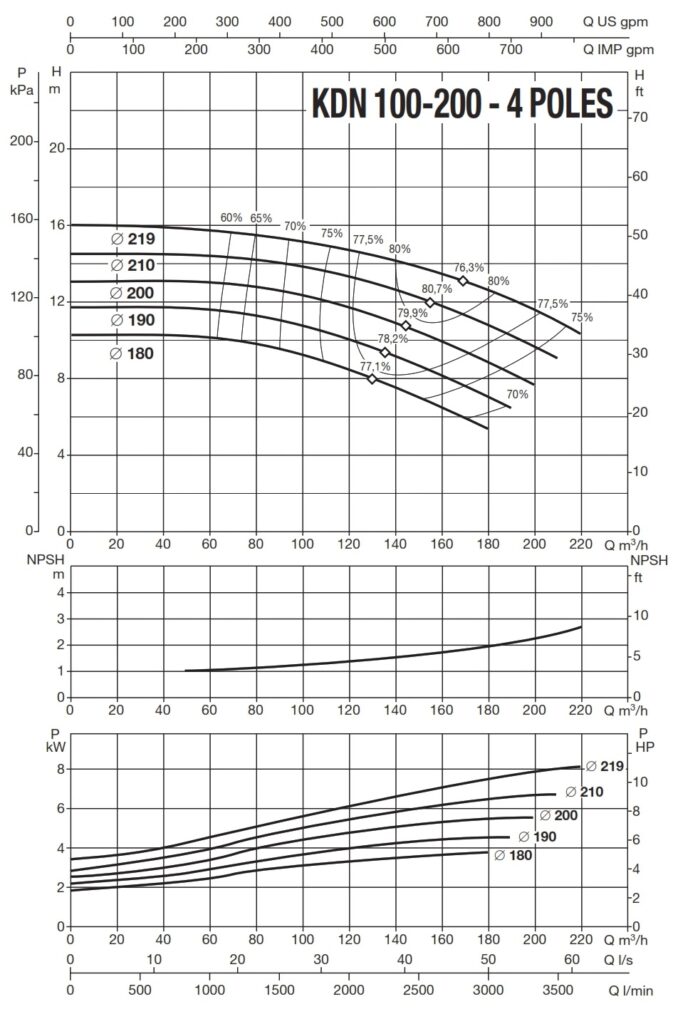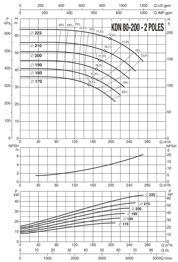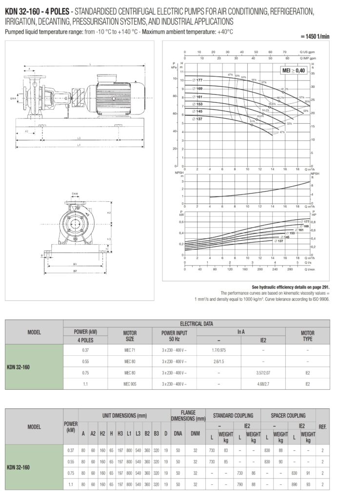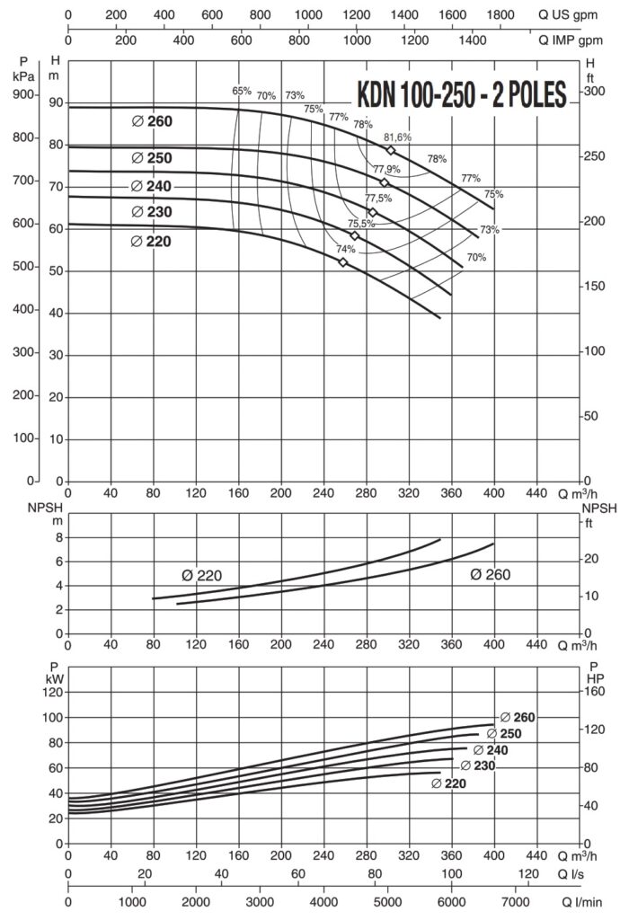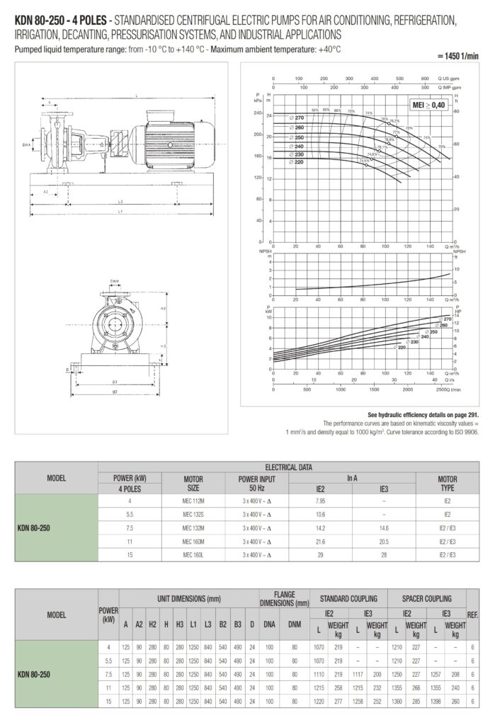 دامنۀ کارکرد پمپ کوپله با شاسی DAB سری KDN