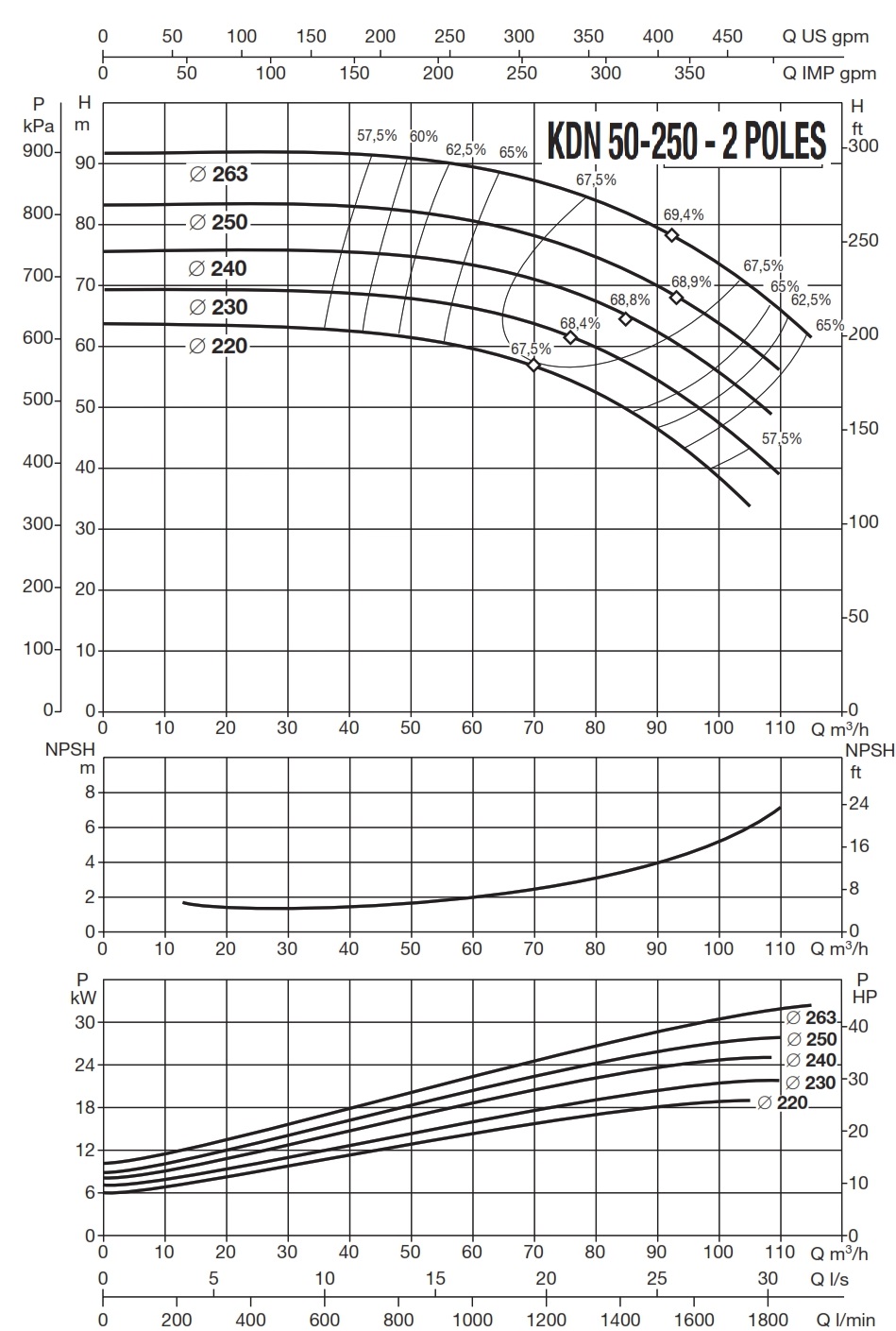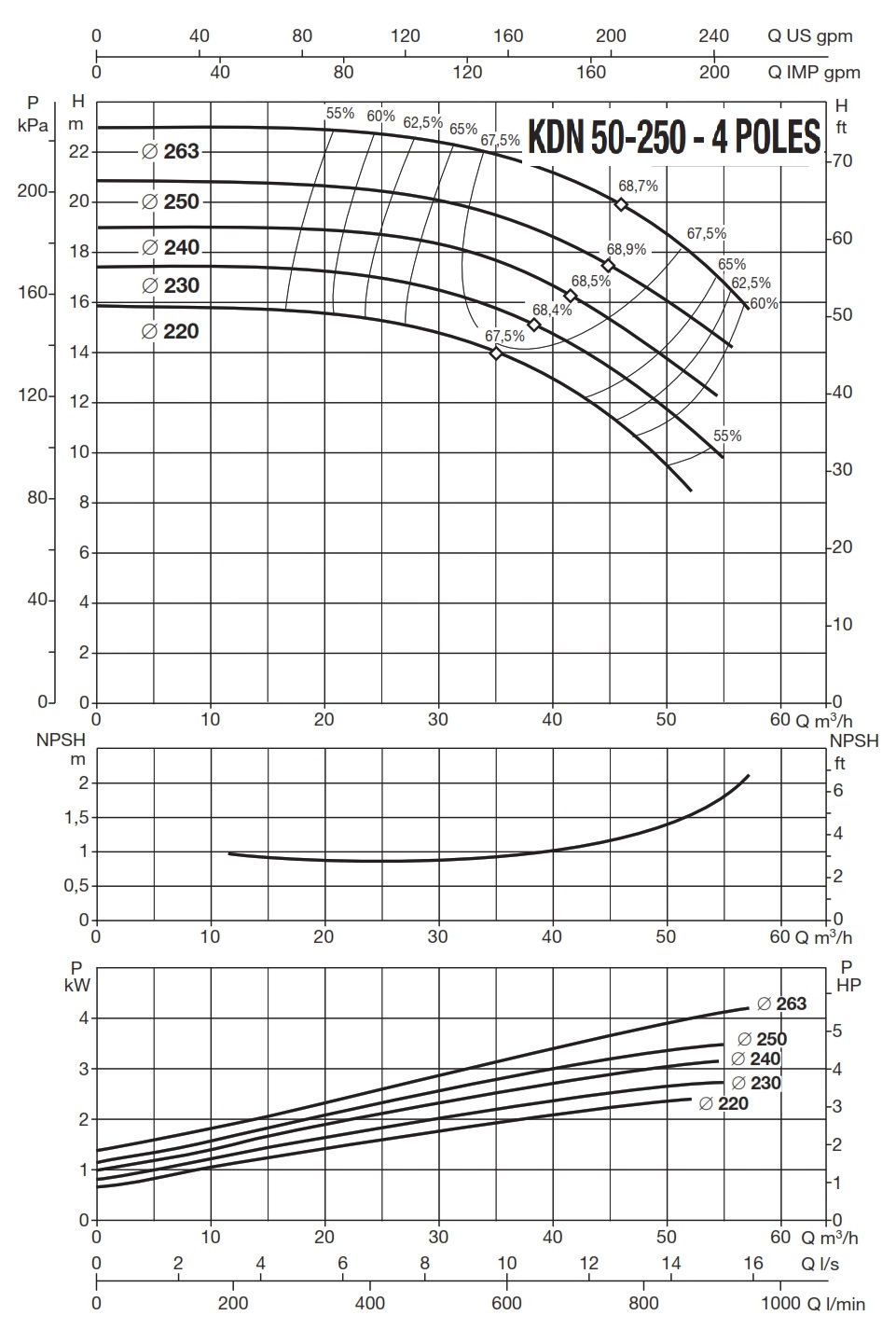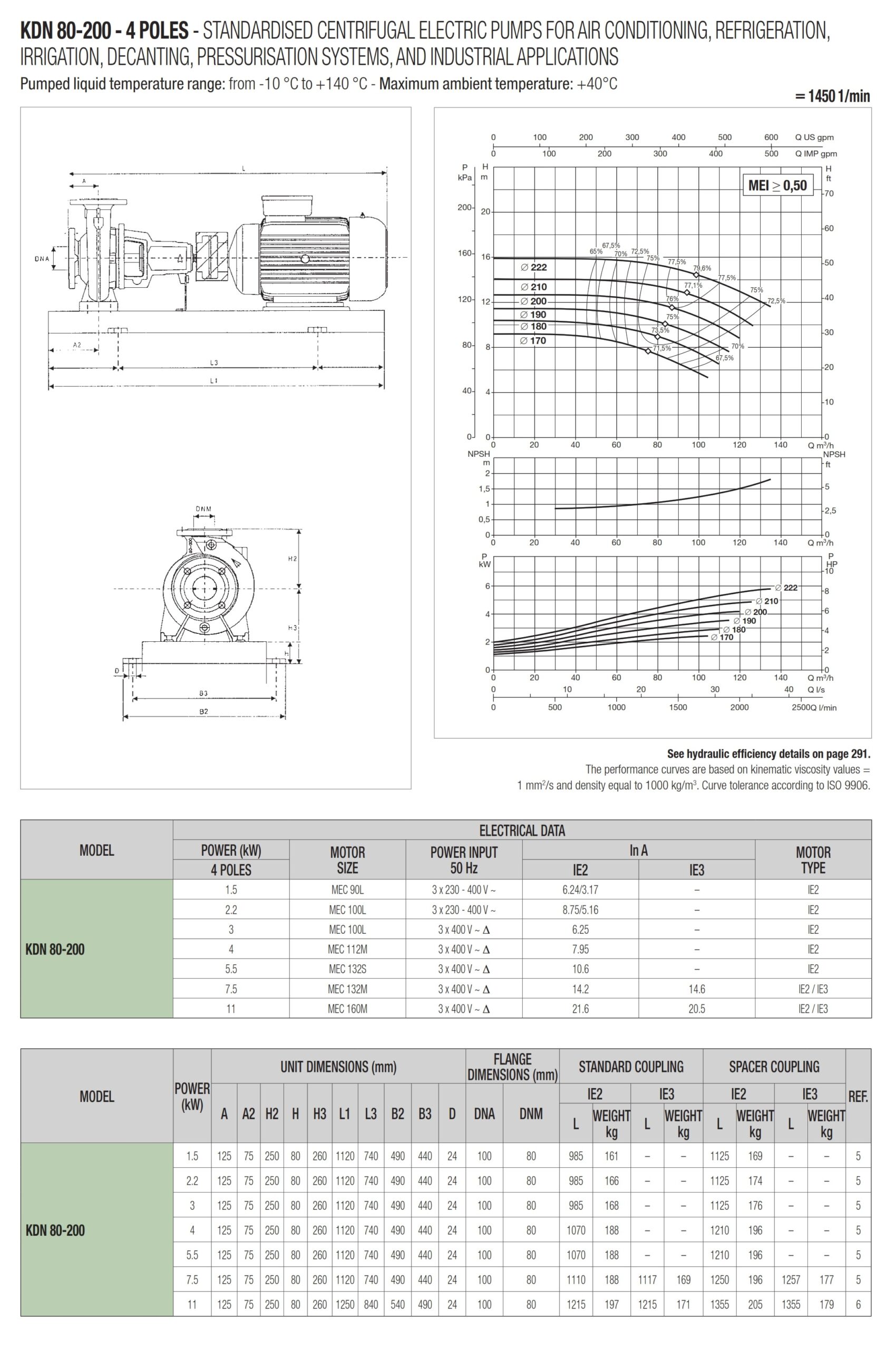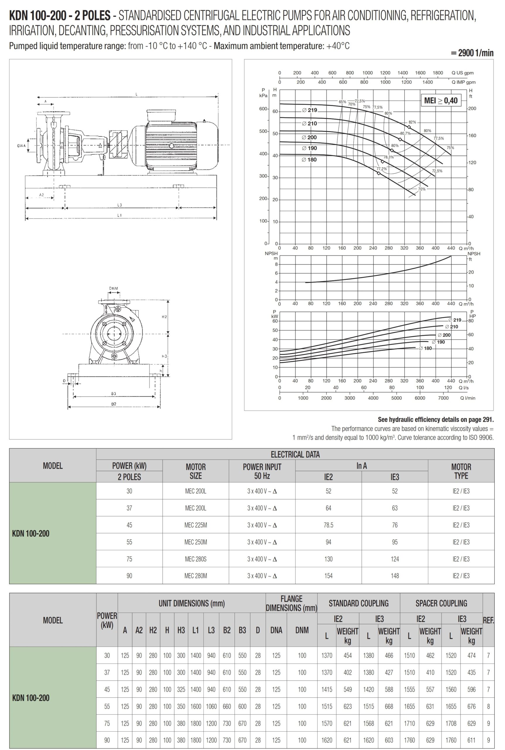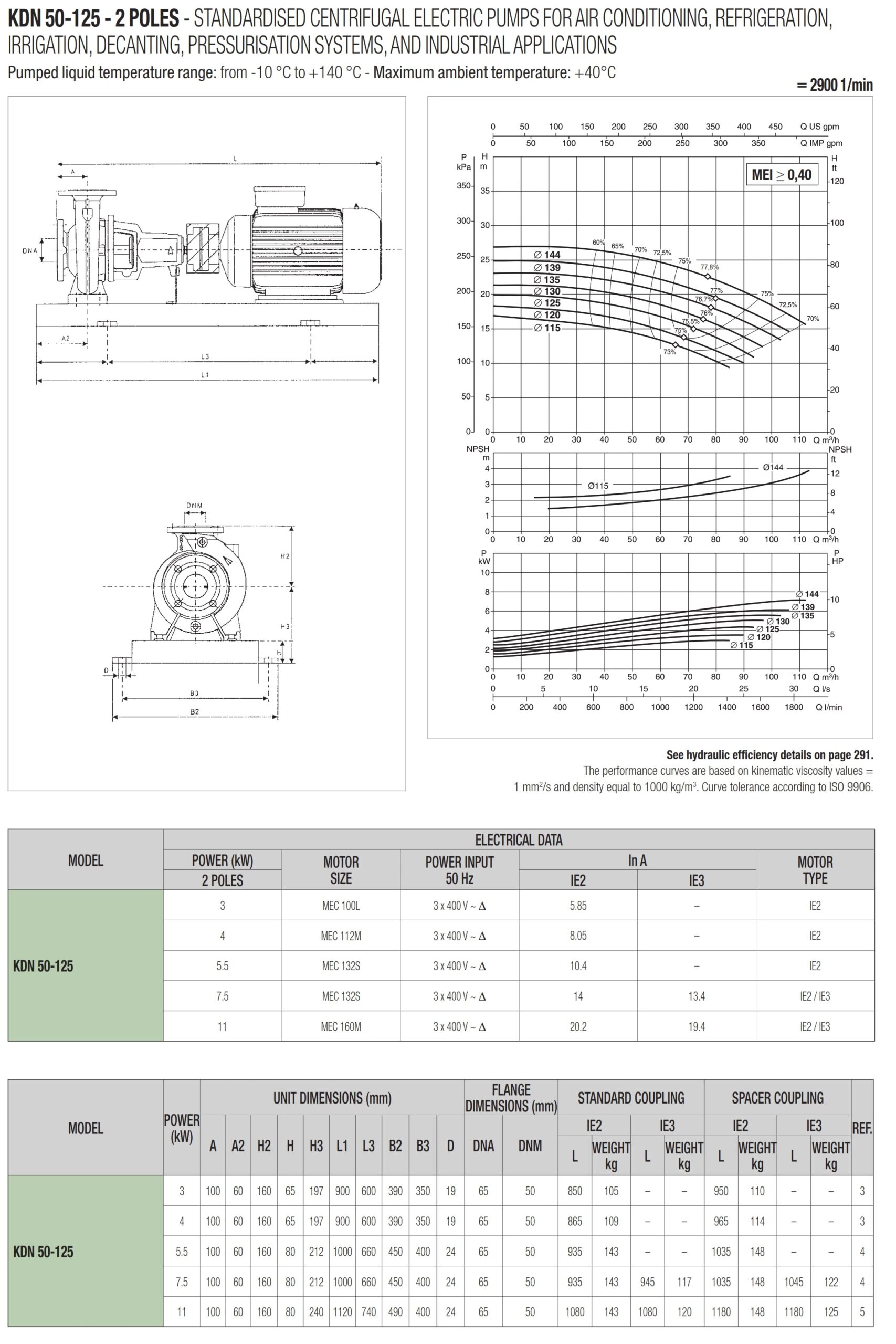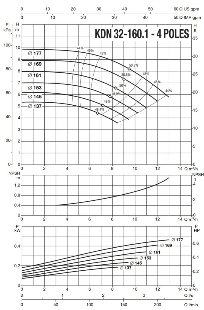 دامنۀ کارکرد پمپ کوپله با شاسی DAB سری KDN