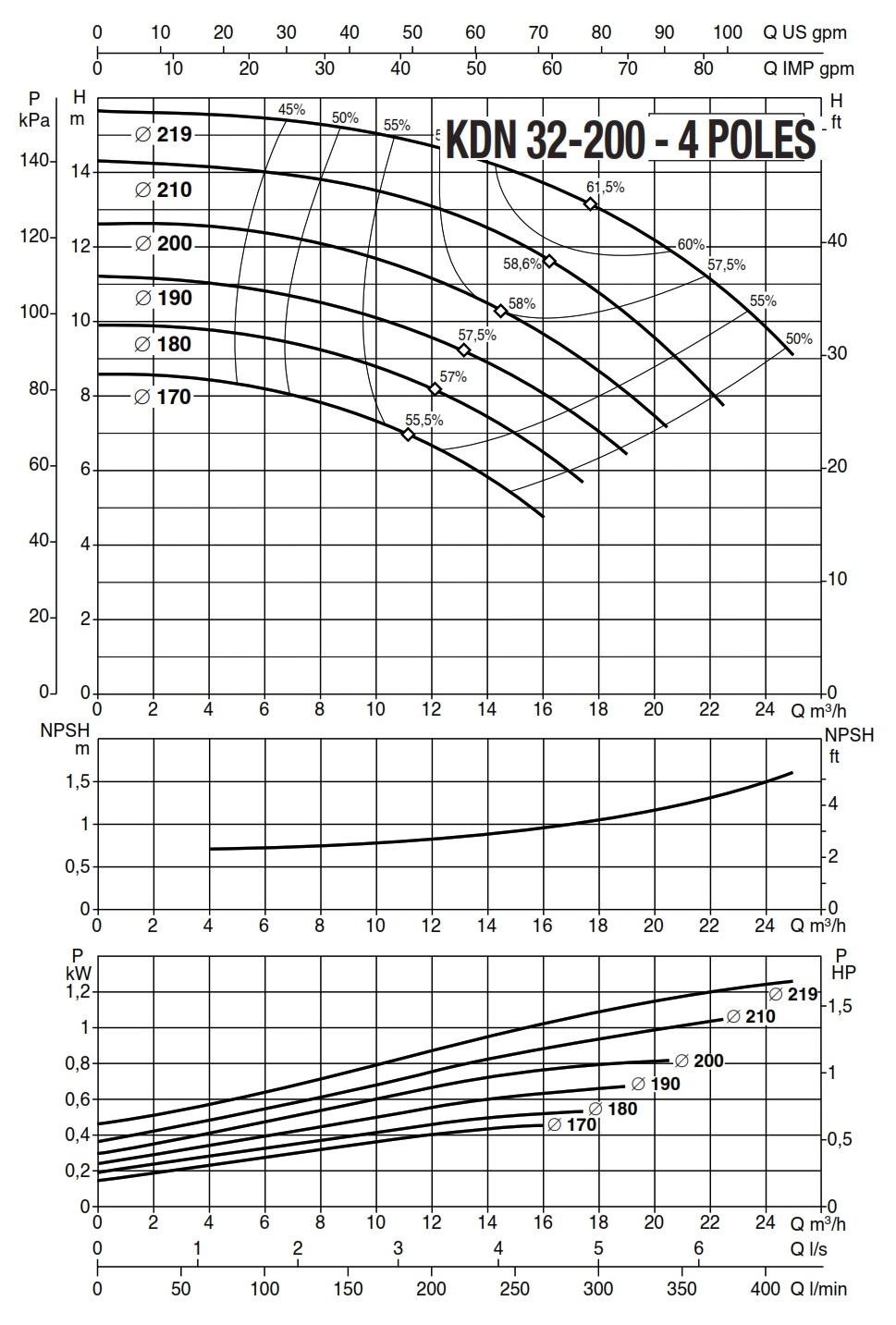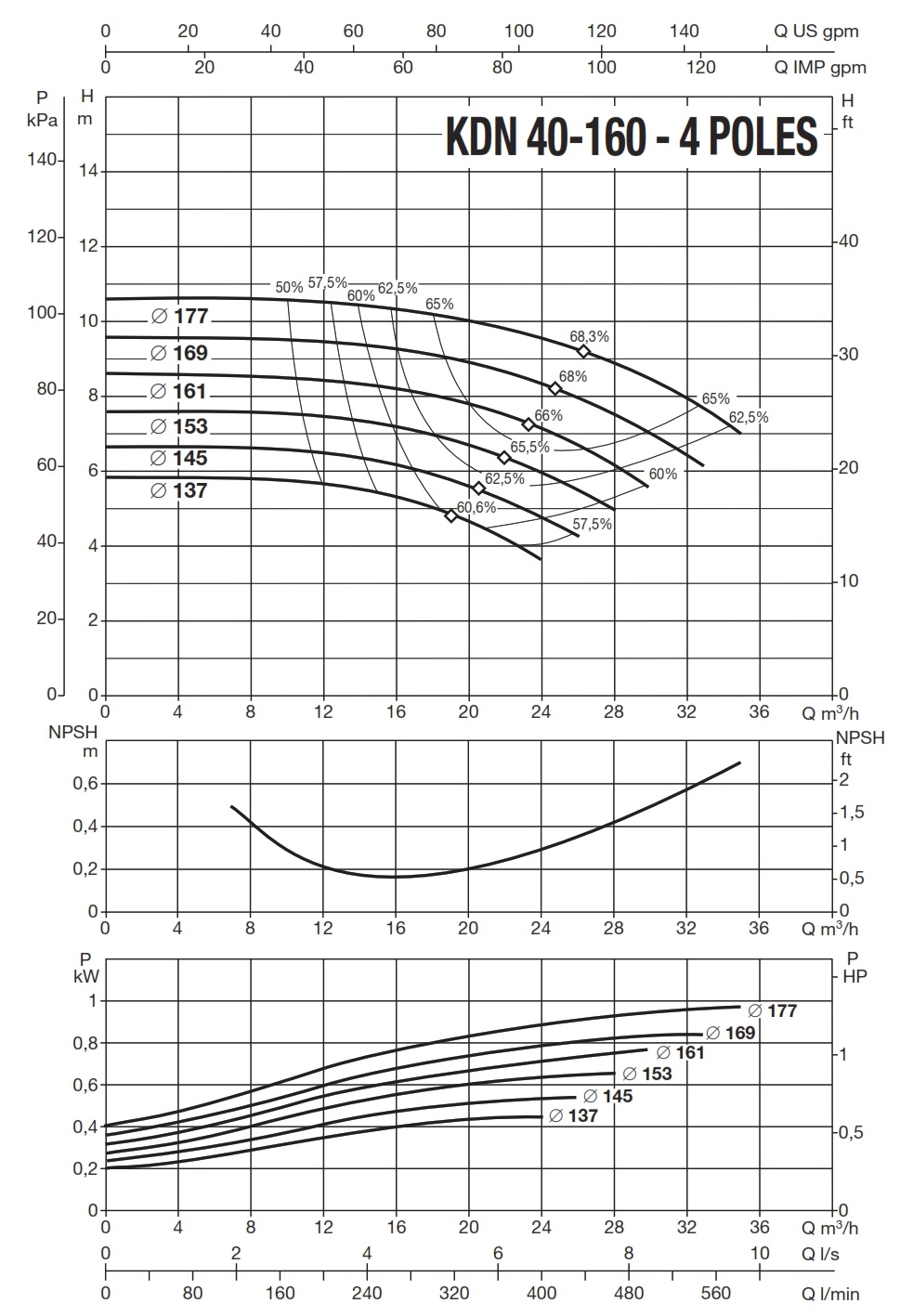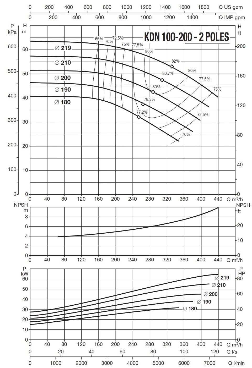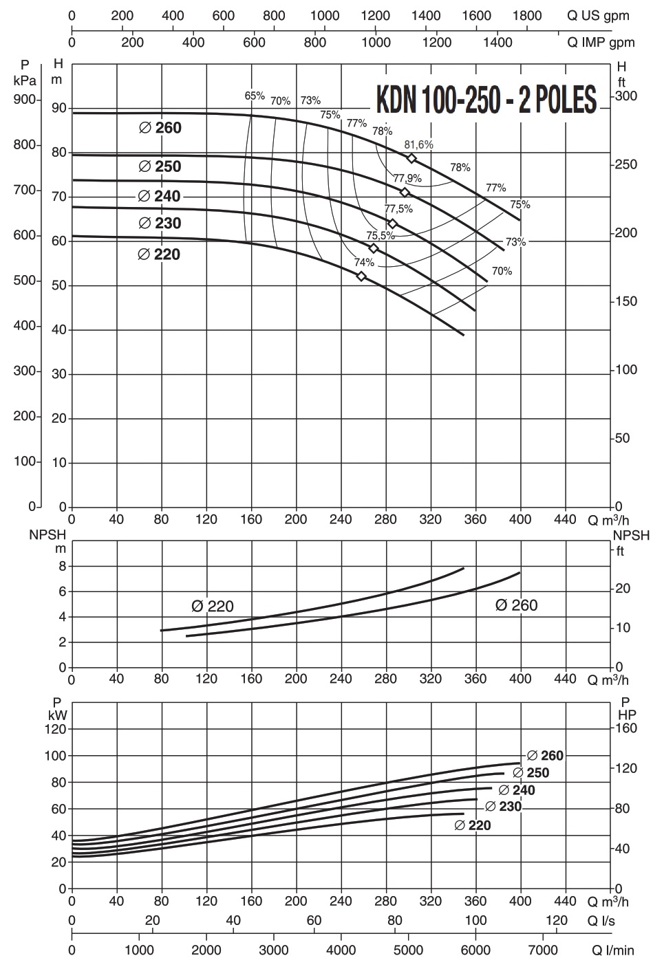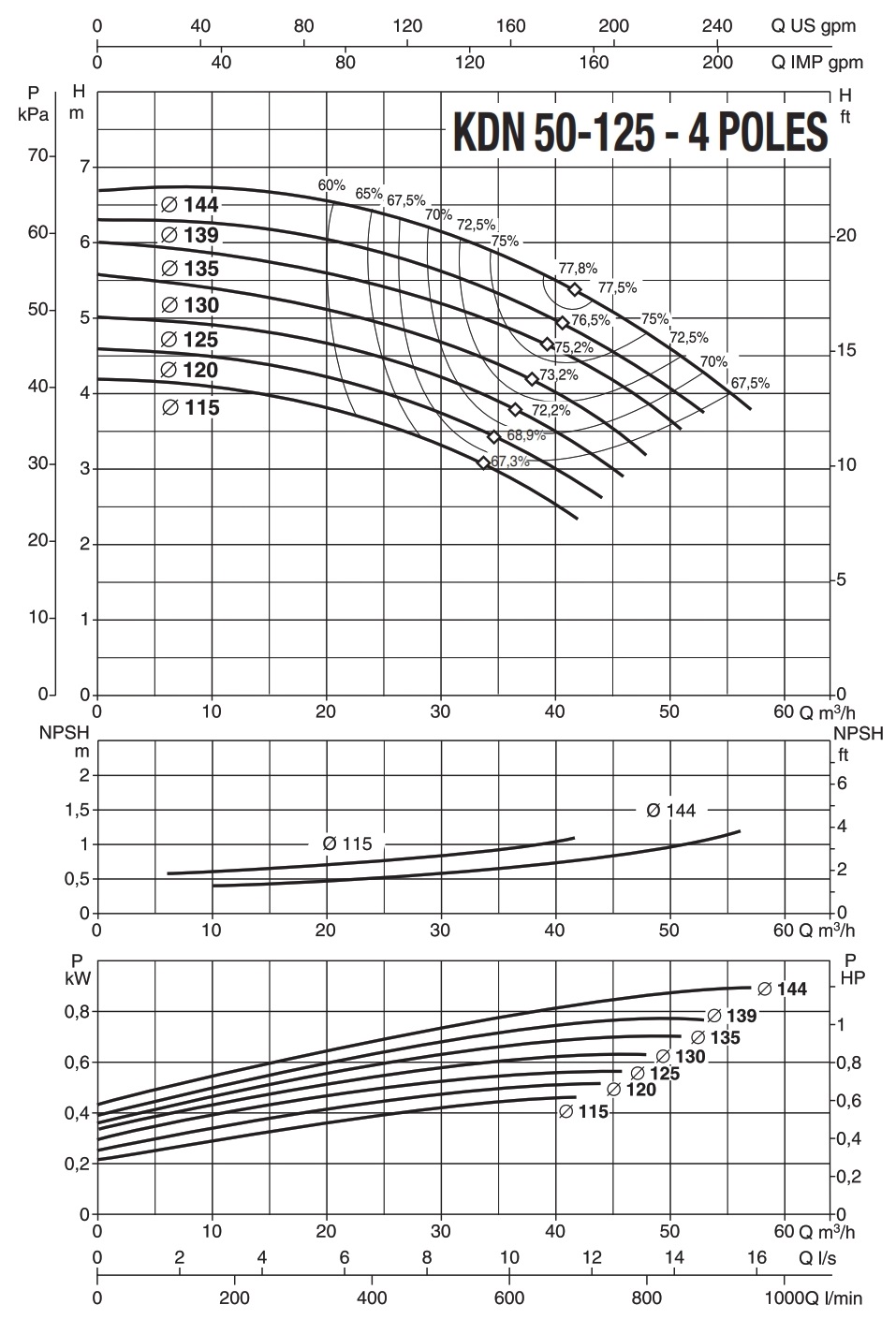دامنۀ کارکرد پمپ کوپله با شاسی DAB سری KDN
