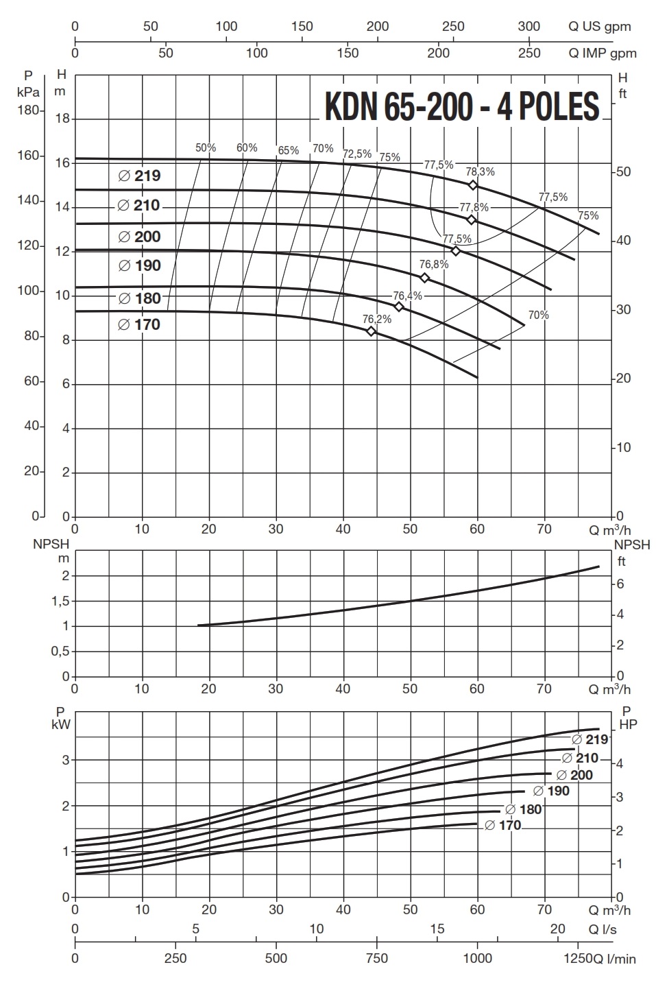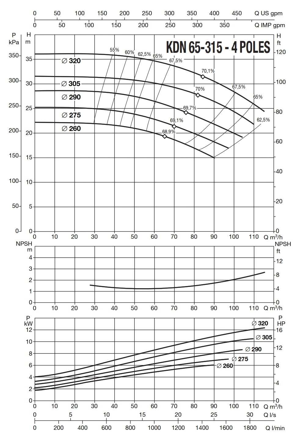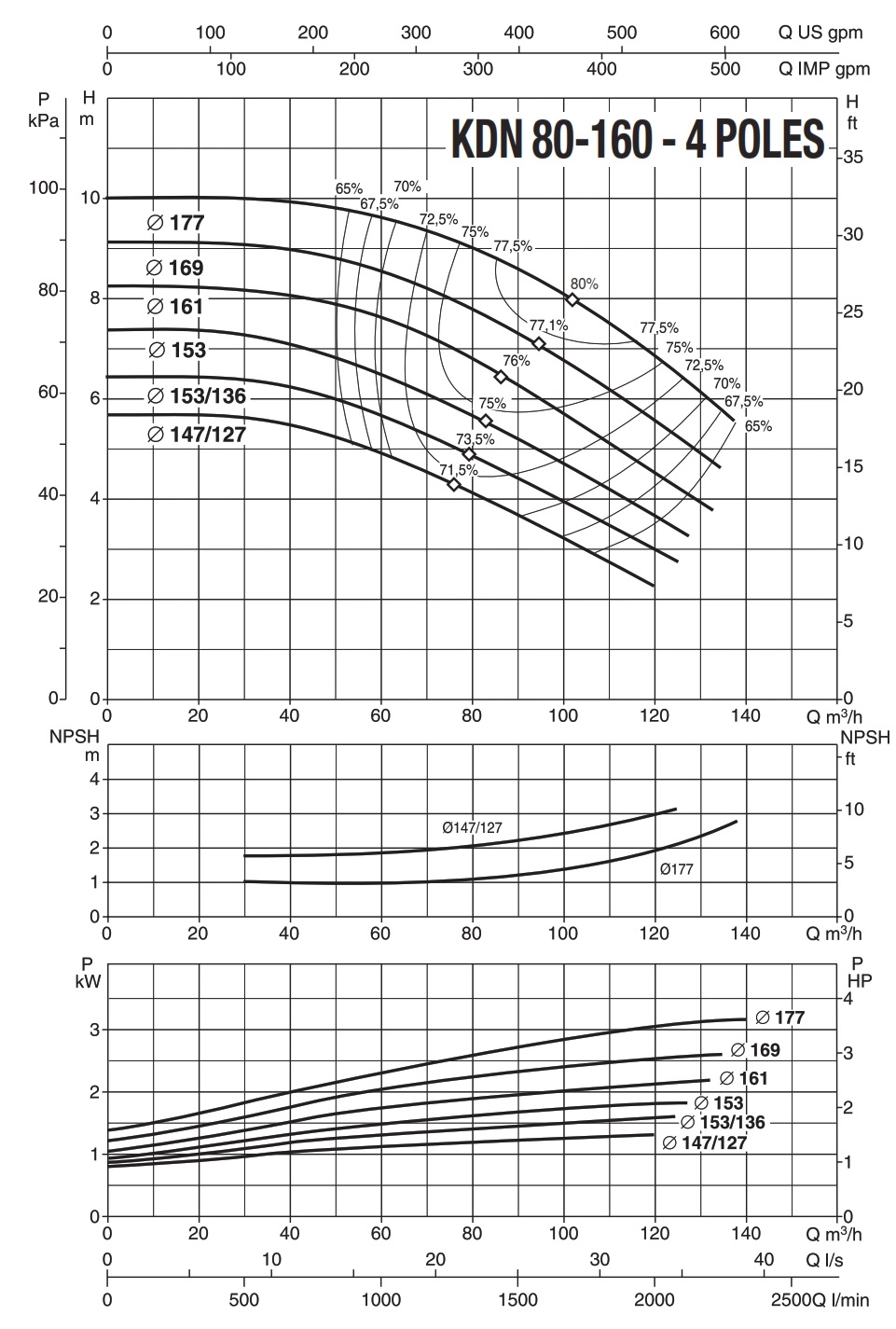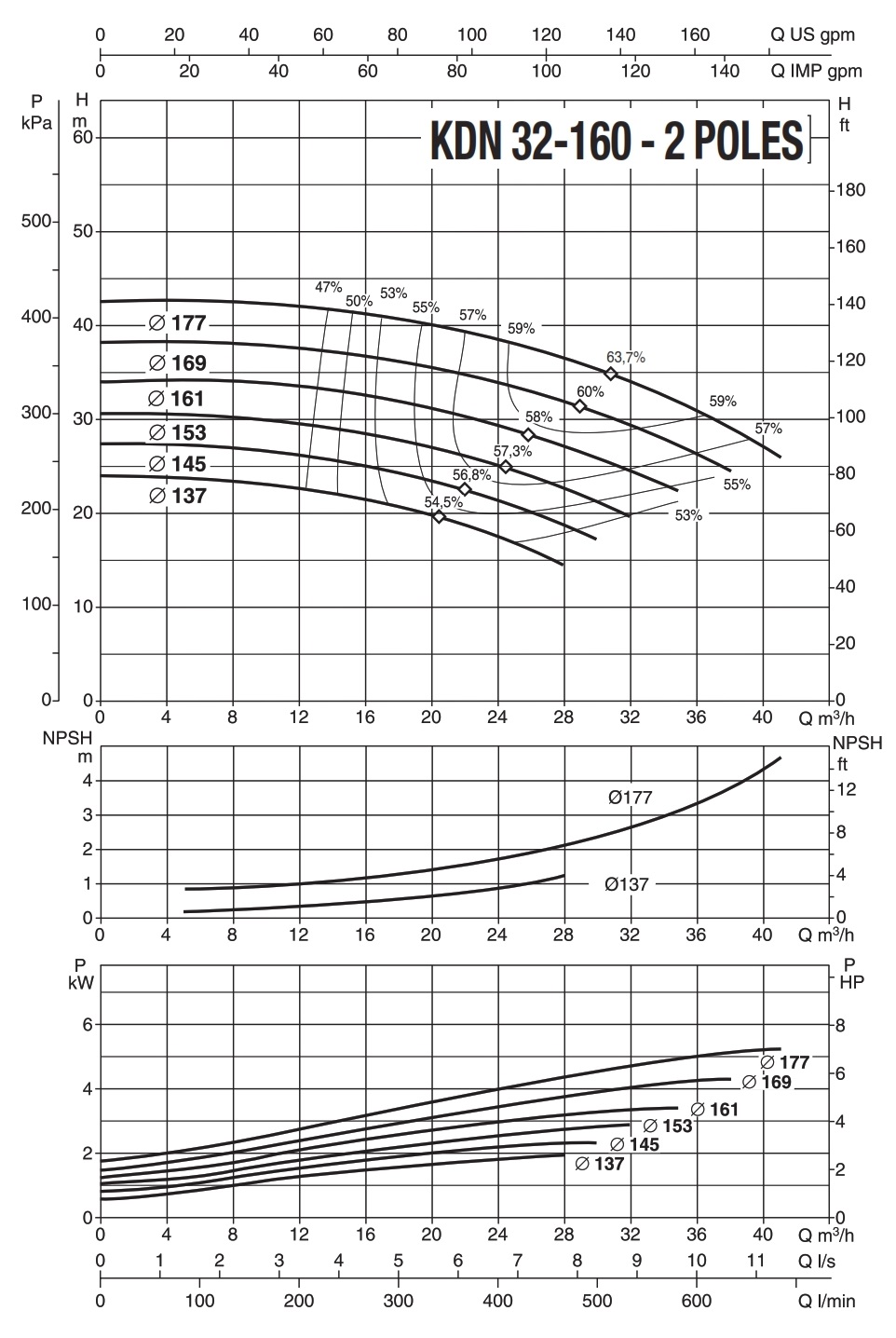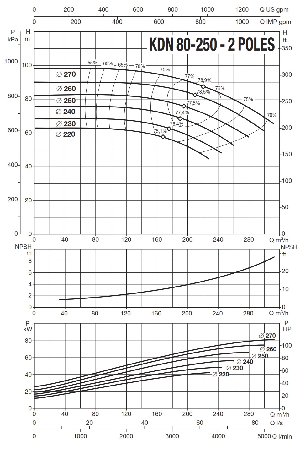 دامنۀ کارکرد پمپ کوپله با شاسی DAB سری KDN