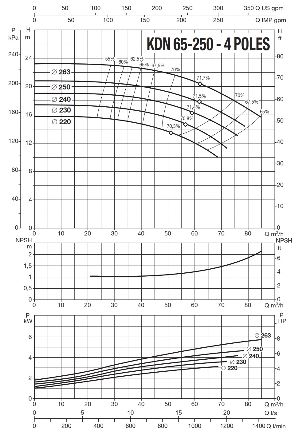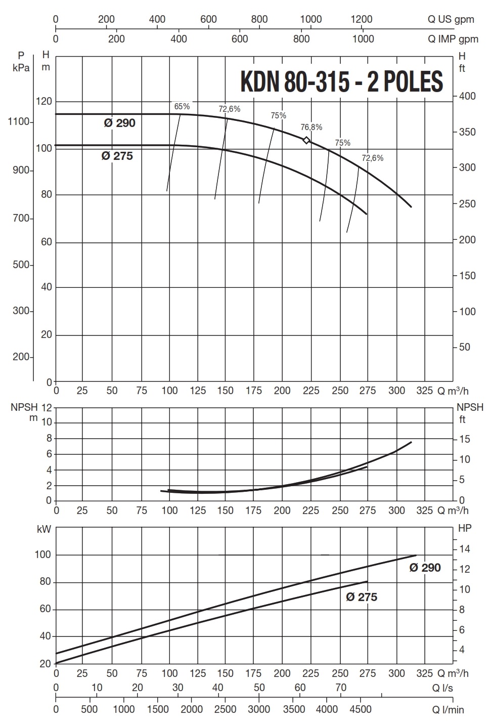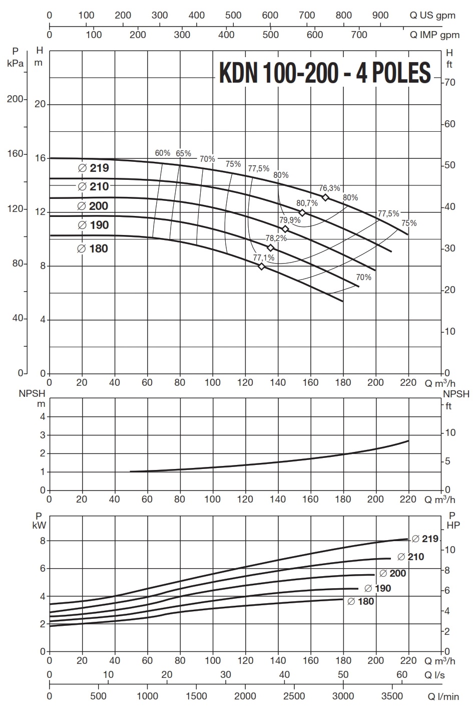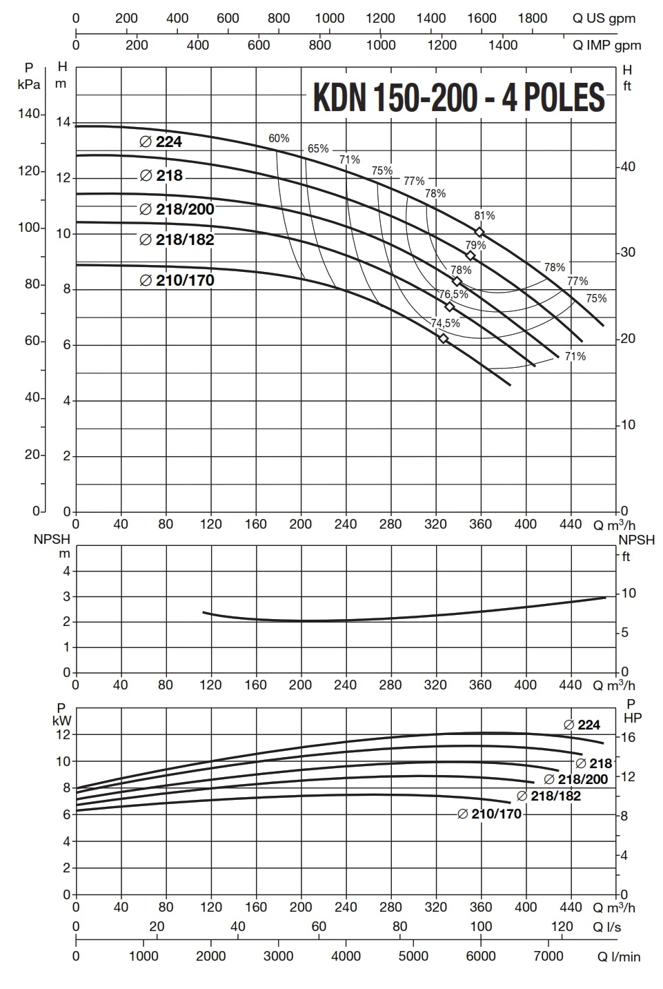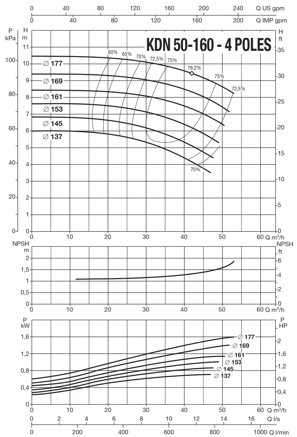 دامنۀ کارکرد پمپ کوپله با شاسی DAB سری KDN